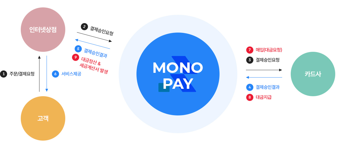 - 상점(가맹점)을 통해 카드결제 발생시 카드사 전산시스템과 연동된 주식회사 모스트피앤에스의 전자결제시스템을 통해 해당 신용카드 거래에 대한 승인 업무를 대행합니다. 승인내역은 당사 상점관리자 페이지에서 조회 및 관리가 가능합니다.