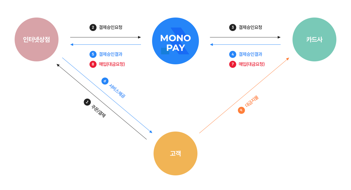 안전하게 신용카드사로 전달되어 결제가 이루어집니다.