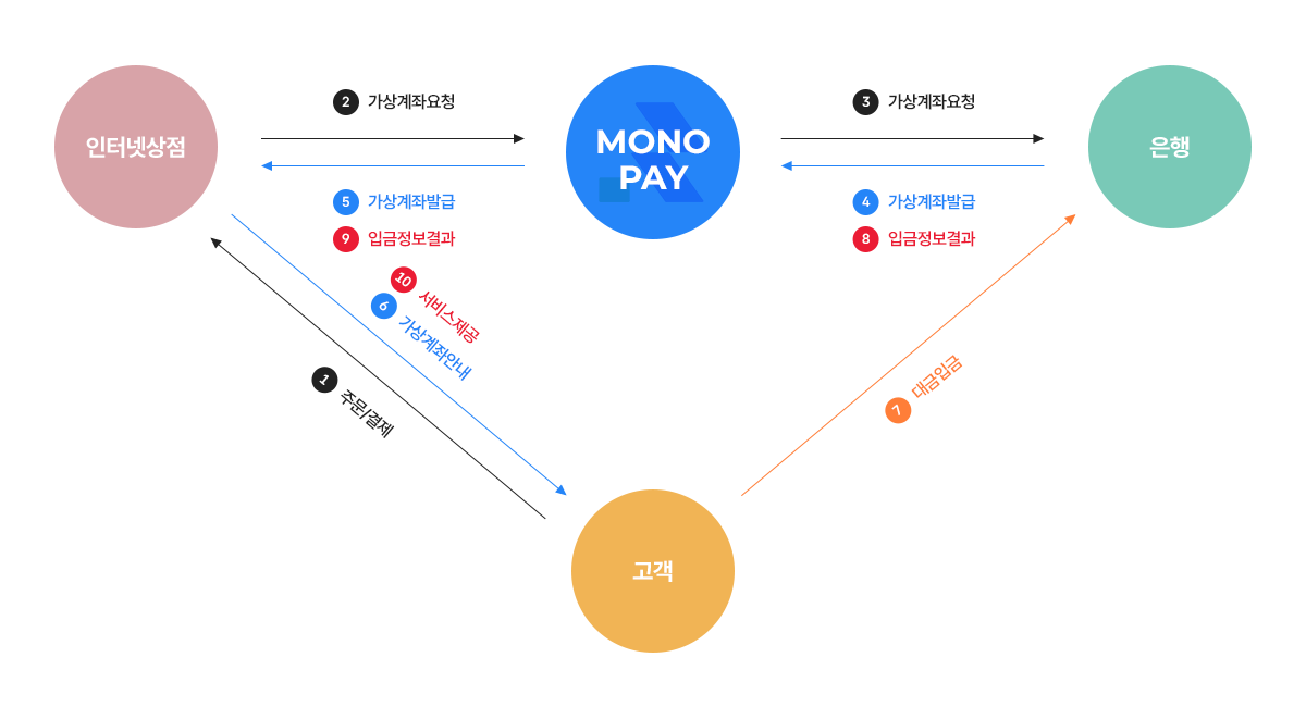 원하는 은행의 1회성 계좌번호를 부여받아 해당 계좌로 입금하는 방식입니다.